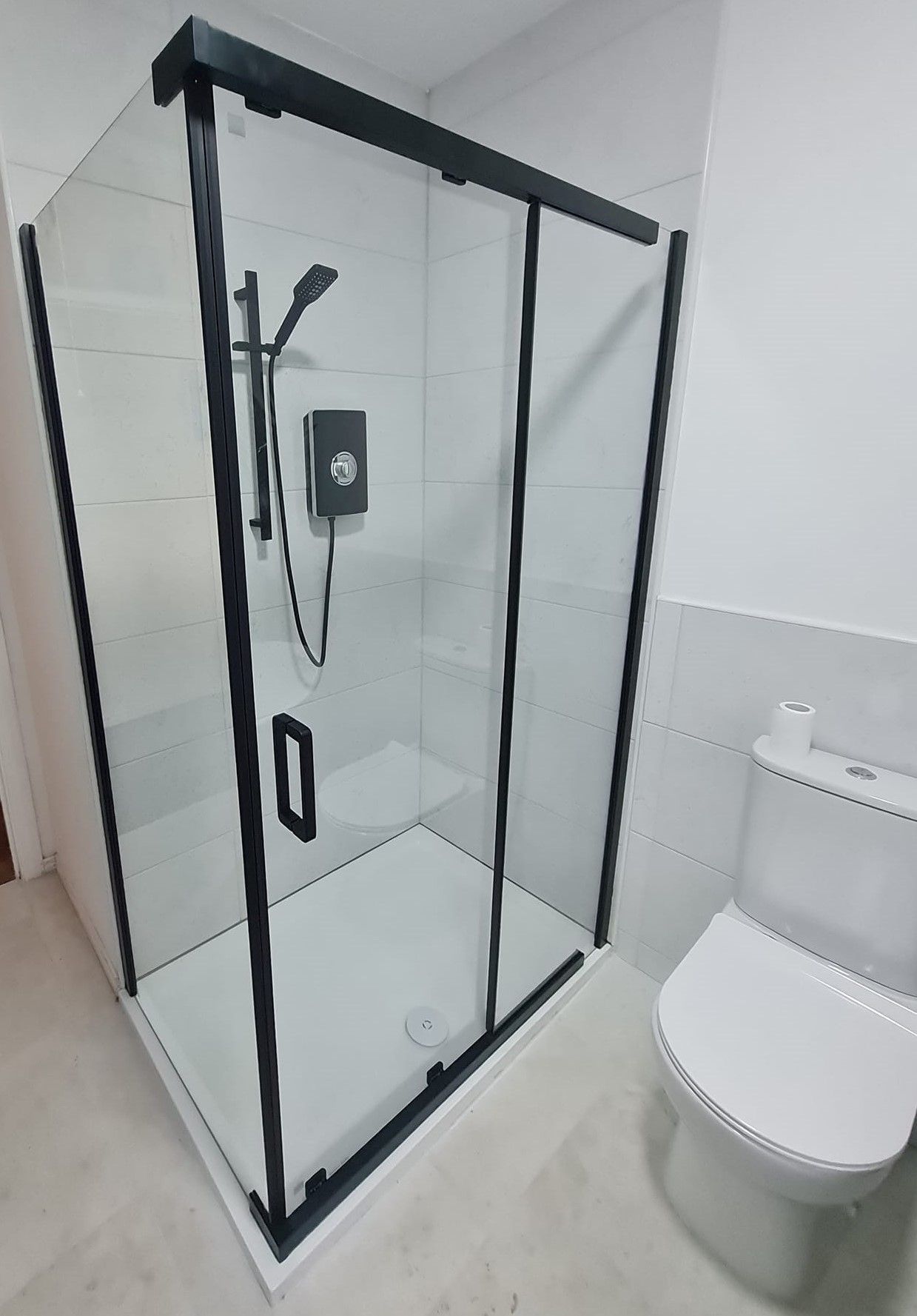 new electric shower and screen installed as well as tiling
